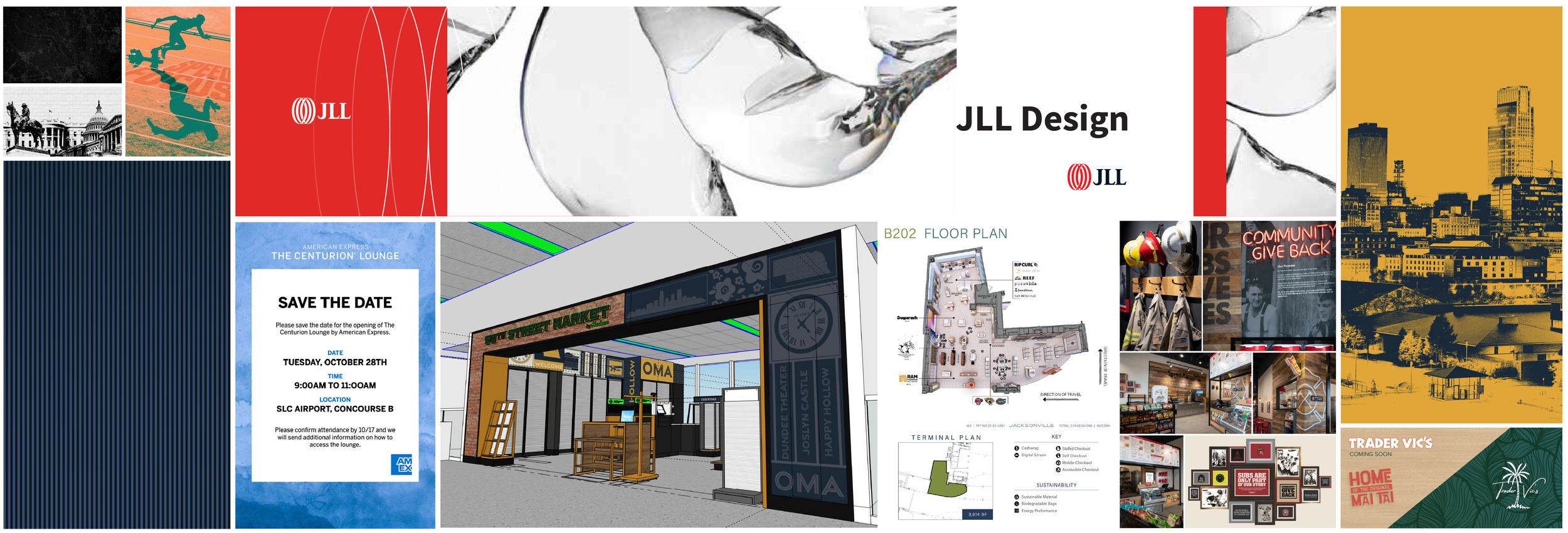 As the graphic design intern at JLL Design, I worked with other graphic designers and interior designers to create various retail installations. I worked with multiple clients and teams, and managed both internal and external graphics needs. My role responsibilities included brand identity ideation, concept work, documentation, signage, wall graphics, tile patterns, and more.