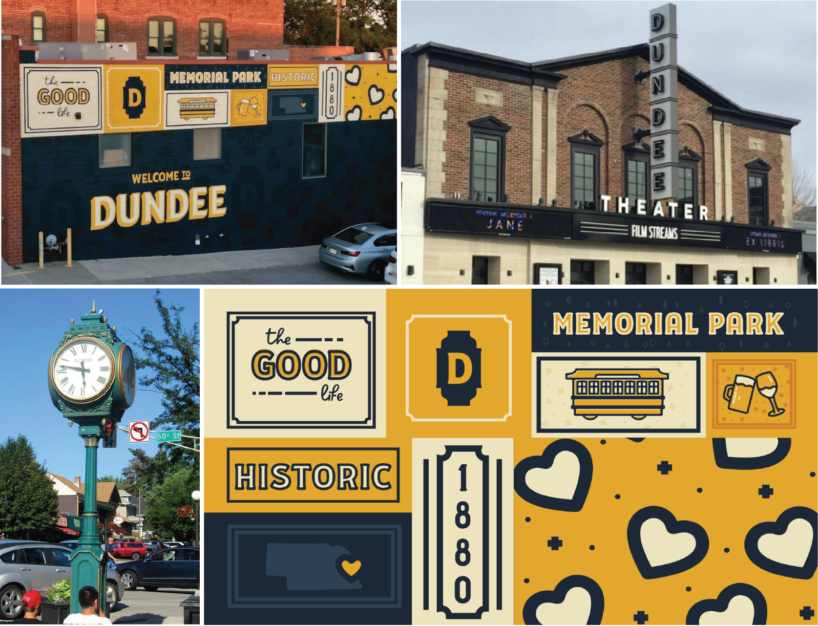 This localized retail store took inspiration from the neighborhood of Dundee in Omaha, Nebraska. Using a few recognizable places and items in Dundee, I created a set of cohesive graphics that cover the interior store as well as the storefront.